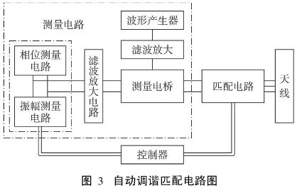 本文提出了一種自動(dòng)匹配技術(shù),其電路如圖3所示,主要包含測(cè)量電路,匹配電路和控制電路。因?yàn)槭止てヅ浞椒ê臅r(shí)長(zhǎng),且需要良好的意識(shí)和豐富的經(jīng)驗(yàn)來(lái)選擇合適的電容,另外必須配備一些昂貴的設(shè)備,如網(wǎng)絡(luò)分析儀或阻抗分析儀等。對(duì)于一些小公司來(lái)說(shuō),是不現(xiàn)實(shí)的。同時(shí),一些手持式RF設(shè)備的發(fā)展使得手動(dòng)匹配越來(lái)越不適應(yīng)。對(duì)于這些移動(dòng)設(shè)備,最理想的天線電路應(yīng)該僅僅包含集成模塊,且隨著阻抗變化可以自動(dòng)匹配。