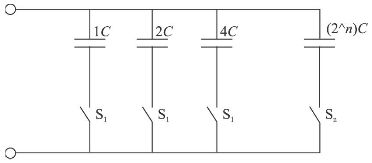機(jī)械微調(diào)電容器既不是集成的也不是電可控的,二極管電容不能充分隔離信號(hào)電壓和控制電壓。因此,最好的方法是用電容陣列,如圖6所示,由半導(dǎo)體開關(guān)控制。將圖1 中的C1、C2 用電容陣列取代。當(dāng)電容值在1到50 pF之間時(shí),開關(guān)選用了低電容DMOS開關(guān)。與普通開關(guān)不同, DMOS開關(guān)存在寄生效應(yīng)。在斷開期間,開關(guān)引腳之間、信號(hào)引腳與地之間都存在這寄生電容。這些電容使得電容陣列的調(diào)諧范圍變窄,同樣也使天線阻抗的調(diào)諧范圍變窄。這個(gè)問(wèn)題仍然有待于進(jìn)一步的研究。
