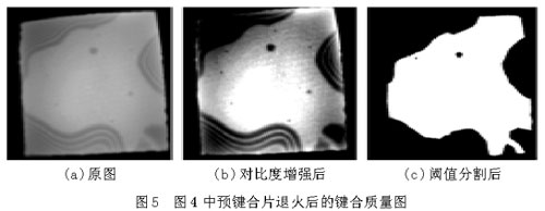 該檢測儀更具有靈活性和實(shí)用性,不但可用于同質(zhì)材料鍵合片的質(zhì)量檢測,還可用于異質(zhì)材料鍵合片的檢測,用于篩選適合下一步工藝研究的合適鍵合片等。同時,該檢測儀結(jié)合到鍵合裝置中,可以實(shí)時觀測鍵合過程中鍵合的動態(tài)圖像,觀察鍵合波,實(shí)時指導(dǎo)鍵合工藝。但目前已實(shí)現(xiàn)的軟件功能還很簡單,只能進(jìn)行鍵合質(zhì)量的初步評估。要獲得鍵合片的更多信息,需要添加軟件功能,這是該系統(tǒng)的不足之處和值得改進(jìn)的地方。