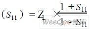 在載波頻率為13. 56 MHz時(shí),通過(guò)在TX1 和TX2 兩點(diǎn)測(cè)量天線(xiàn)線(xiàn)路的反射系數(shù)(即參數(shù)S11 )來(lái)手動(dòng)調(diào)諧,直到天線(xiàn)電路的輸入阻抗達(dá)到目標(biāo),計(jì)算方程如下: