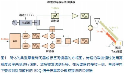 最簡(jiǎn)單的RFID系統(tǒng)由一個(gè)標(biāo)簽(可以是無(wú)源標(biāo)簽)和一個(gè)閱讀器組成。從結(jié)構(gòu)上看,無(wú)源標(biāo)簽的讀取與傳統(tǒng)全雙工數(shù)據(jù)鏈路略有不同。與傳統(tǒng)有源數(shù)據(jù)鏈路不同的是,無(wú)源標(biāo)簽依賴其收到的RF能量為自身供電。無(wú)源標(biāo)簽同樣不會(huì)生成自己的傳送載波信號(hào),而是調(diào)制詢問器發(fā)送到標(biāo)簽的部分能量,這一過(guò)程稱為反向散射。