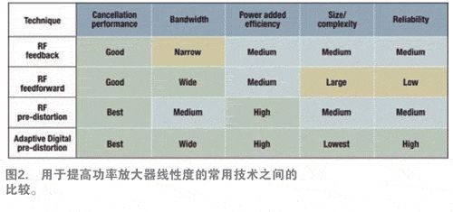 雖然諸如RF前饋、RF反饋、FR/IF預(yù)失真以及后失真等老式技術(shù)提高了PA性能并減少了失真,但自適應(yīng)DPD方案是業(yè)經(jīng)驗(yàn)證最具靈活性的超低成本方案。針對(duì)所有現(xiàn)行無線標(biāo)準(zhǔn)以及最普遍PA技術(shù)(包括A/B類、Doherty,甚至新出現(xiàn)的包絡(luò)追蹤PA架構(gòu)等)而言,TIDPD/CFR解決方案都能增強(qiáng)PA性能。圖2將DPD與其它解決方案進(jìn)行了比較。