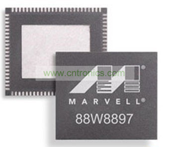 這款WiFi芯片型號為88W8897,它旨在和博通公司的芯片進行競爭(已經(jīng)在5G WiFi路由器中運用)。88W8897 WiFi芯片的特別之處在于它集成了NFC和藍牙能力。據(jù)了解,Marvell的這款雙通道WiFi芯片帶寬可以達到900Mbps(博通芯片為1.3Gbps),它不僅可以運用于手機,也可以使用在超極本以及平板電腦中。