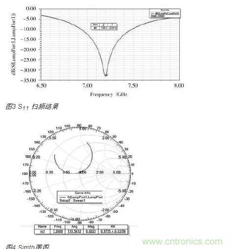 (4)用HFSS 軟件設計好天線的標準,然后對天線的各個參量進行系統(tǒng)自動優(yōu)化,計算出符合條件的各參數(shù)的最佳值。得到的結果如下: