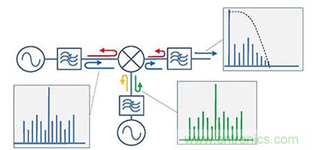 互調(diào)抑制一直是衡量混頻器設(shè)計(jì)的目標(biāo)之一?;诋?dāng)前半導(dǎo)體工業(yè)的發(fā)達(dá),我們可以通過利用高動態(tài)范圍的場效應(yīng)管成功實(shí)現(xiàn)了不同水平的互調(diào)抑制。然而,即使最好的混頻器也會在它的每個端口產(chǎn)生一些互調(diào)產(chǎn)物,并且這些互調(diào)產(chǎn)物會成為影響到周邊射頻鏈路中的因素。當(dāng)傳統(tǒng)濾波器要濾除這些互調(diào)產(chǎn)物時,他們會被完全反射回到混頻器,并與基波信號重新合成而產(chǎn)生大量的假信號。這些假信號會因?yàn)榭赡苈湓谒璧念l帶內(nèi)而通過濾波器輸出到中頻,進(jìn)而限制了整個系統(tǒng)的動態(tài)范圍。