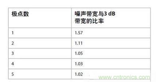 圖3:巴特沃茲濾波器的噪聲帶寬與3 dB帶寬的關(guān)系。