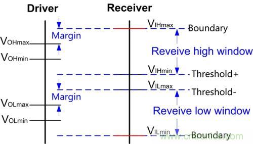 當(dāng)Driver的VOH范圍全部落入Receiver的VIH窗口之內(nèi),Driver的VOL范圍全部落入Receiver的VIL窗口之內(nèi)時(shí),可以保證Receiver可以正確接收Driver的輸出,否則會(huì)有潛在的互連不正確甚至損壞器件的可能。