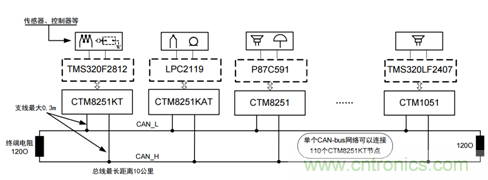與485類似,CAN-bus也是以總線的方式進行通信的,所有的CAN節(jié)點都掛在一對差分線上。但CAN總線中的節(jié)點不存在主從的概念,當節(jié)點有數(shù)據(jù)需要上傳時可自主、即時發(fā)送,先進的仲裁機制保證數(shù)據(jù)不會沖突。