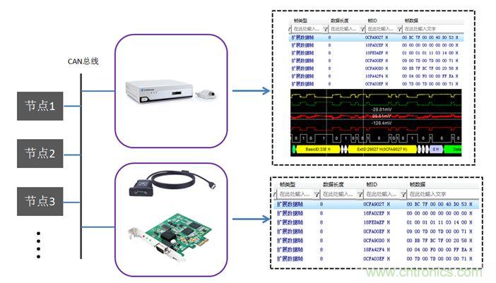 【導讀】在CAN網(wǎng)絡中,所有節(jié)點的數(shù)據(jù)收發(fā)共享一條總線。當面對未知的多節(jié)點CAN總線網(wǎng)絡時,如何準確分析各節(jié)點間的通信協(xié)議呢?