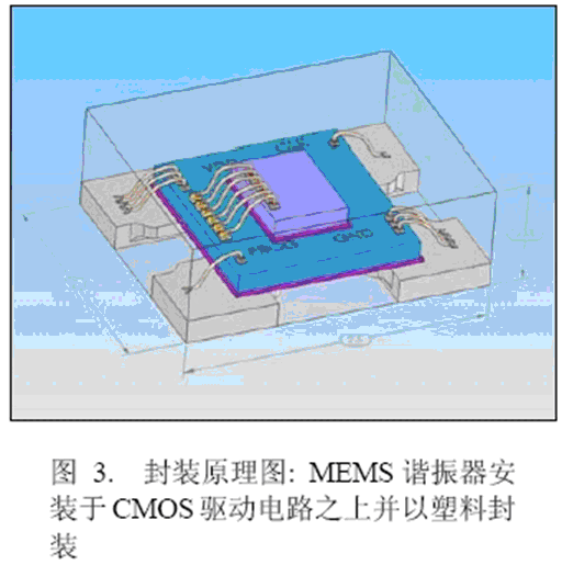 - 經(jīng)濟有效的封裝方法是將MEMS諧振器安裝在CMOS驅動電路之上