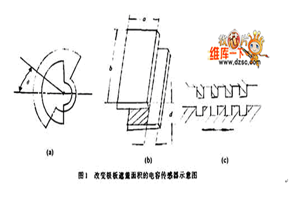 圖1是3種這類(lèi)傳感器的原理圖,圖1(a)中是利用角位移來(lái)改變電容器極板遮蓋面積。假定當(dāng)2塊極板完全遮蓋時(shí)的面積為S0,兩極板間的距離為d,極板間介質(zhì)的介電常數(shù)為ε。當(dāng)忽略邊緣效應(yīng)時(shí),該電容器的電容量為: