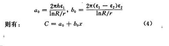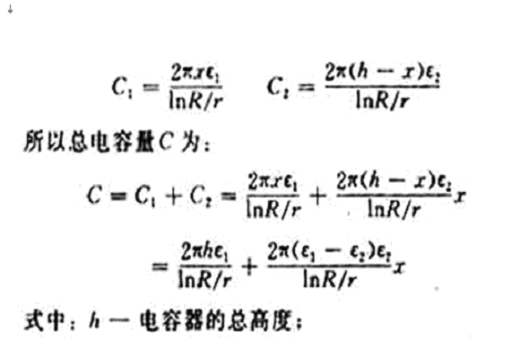 當(dāng)容器的尺寸和被測(cè)介質(zhì)確定后,則h,R,r,ε1和ε2均為常數(shù),令: