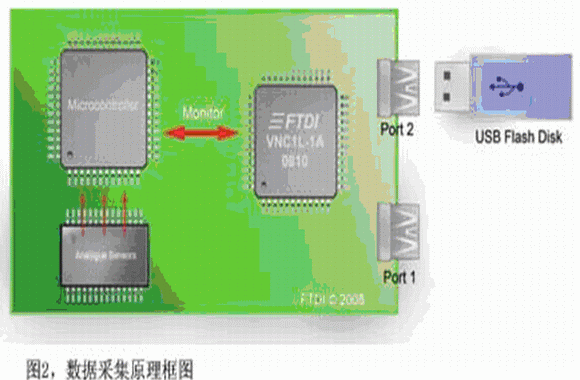 目前市場(chǎng)上有很多種數(shù)據(jù)采集設(shè)備可用于在PC上記錄數(shù)據(jù),如National Instrument的LabVIEW,不過(guò)這類設(shè)備的傳感器件開(kāi)始越來(lái)越多地采用USB接口而不是RS232或其他傳統(tǒng)接口。過(guò)去在嵌入式系統(tǒng)中應(yīng)用USB設(shè)備需要性能相對(duì)較強(qiáng)的硬件,要帶有USB Host控制器接口、RTOS以及USB軟件驅(qū)動(dòng),結(jié)果因USB Host功能實(shí)施成本的原因設(shè)計(jì)工程師一直都不太愿意在小型8位或16位MCU系統(tǒng)上增加USB設(shè)備。但隨著最新一代智能USB Host控制器IC的推出,與MCU配合使用不僅可為PC應(yīng)用使用USB數(shù)據(jù)采集設(shè)備,而且還可將數(shù)據(jù)存儲(chǔ)在低成本高容量的閃存盤上。