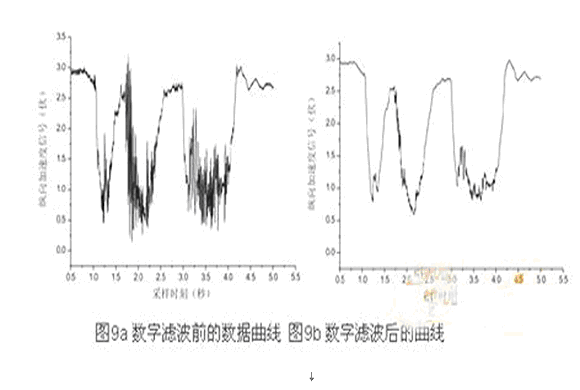 調(diào)整圖8中各個(gè)阻容元件的參數(shù),即可設(shè)置濾波截止頻率和延時(shí)大小。汽車運(yùn)行過程中,在較好路面上行駛時(shí),由于信號較好,延時(shí)盡量要小,而在顛簸路面上行駛,則希望濾波效果要好。但是由于硬件濾波的頻率特性一經(jīng)設(shè)計(jì)完畢,無法實(shí)時(shí)修改,故需要在軟件中設(shè)計(jì)數(shù)字濾波環(huán)節(jié)。數(shù)字濾波常用的有維納濾波器、卡爾曼濾波器、線性預(yù)測器、自適用濾波器等。在這里選用計(jì)算量小、實(shí)時(shí)性能好的一階低通濾波。