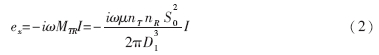 式中,nT和nR分別為發(fā)射線圈和接收線圈的匝數(shù);S0為線圈的橫截面積;I為發(fā)射線圈中的電流;μ為介質(zhì)磁導(dǎo)率; D1為T、R兩線圈之間的距離;MTR為兩線圈互感系數(shù)。所以由此而產(chǎn)生的感應(yīng)電動(dòng)勢(shì)為: