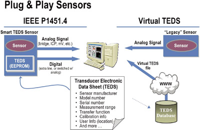 IEEE1451.3啟動處在多分支網(wǎng)絡(luò)中的傳感器的運(yùn)行;于2003年通過的IEEE P1451.4規(guī)定與數(shù)字傳感器相關(guān)的數(shù)據(jù)(像傳感器的類別、型號、操作參數(shù)以及位置等)必須能夠以電子數(shù)據(jù)表的格式從整合在傳感器中的EEPROM(電可擦除只讀存儲器)存儲器中讀取,這種數(shù)據(jù)表被稱為變換器電子數(shù)據(jù)表(TEDS-Transducer Electronic Data Sheet)。IEEE P1451.4標(biāo)準(zhǔn)極大地簡化了傳感器的布線以及更換故障傳感器的問題。它同時也免除了傳感器在設(shè)置和校準(zhǔn)方面的人工干預(yù),這種干預(yù)即費(fèi)時又易出錯。這樣傳感器就成了即插即用的裝置。在國家儀器網(wǎng)站(National Instruments’ web site)中有一個有效TEDS的數(shù)據(jù)庫,它包括了可以在IEEE P1451網(wǎng)絡(luò)中使用的各種老式的或沒有EEPROM的傳感器的專門資料。IEEE 1451.5標(biāo)準(zhǔn)仍在審核階段,它規(guī)定的是將TEDS連接到無線網(wǎng)絡(luò)中的必要條件,如與802.11、藍(lán)牙或ZigBee等的連接。最近又提出了IEEE 1451.6標(biāo)準(zhǔn)議案,它定義TEDS和CAN總線的接口。