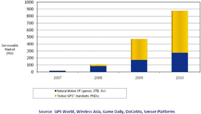 市場調(diào)研機(jī)構(gòu)iSuppli認(rèn)為,移動傳感器(motion sensors)將代替?zhèn)鹘y(tǒng)的傳感器成為MEMS市場的主要推動力,至少在2012年之前會是這樣。尤其是加速計(jì)(accelerometer),它在便攜式消費(fèi)電器中將被用來啟動一系列高級界面功能。傳感器在消費(fèi)電器中的應(yīng)用正在迅速飆升,像用于游戲、筆記本電腦和數(shù)碼相機(jī)中的移動傳感器就是實(shí)例。雖然以傳感器為基礎(chǔ)的微型機(jī)電系統(tǒng)(MEMS-microelectromechanical systems)的價格已經(jīng)在迅速下降,它們還是太昂貴而不能被用在一些對價格敏感的消費(fèi)產(chǎn)品中。