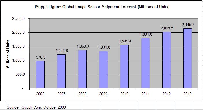 iSuppli預(yù)測2009年,13億顆影像傳感器被運(yùn)往世界各地,而2012年,市場出貨量將跨越20億顆的門檻。