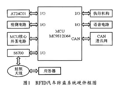 RFID系統(tǒng)為該汽車防盜系統(tǒng)的核心組成部分。一般由標(biāo)簽(TAG,即射頻卡)、閱讀器、射頻天線三部分組成。標(biāo)簽由耦合元件及芯片組成,含有內(nèi)置天線,用于和射頻天線間通訊;閱讀器用于讀取(在讀寫卡中還可以寫入)標(biāo)簽信息;射頻天線用于在標(biāo)簽和讀取器間傳遞射頻信號(hào)。