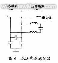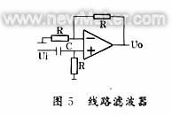 通常,經(jīng)典濾波器用得最多。濾波電路可以由無(wú)源元件R、L、C組成,如圖5所示的線路濾波器;也可以包含有源元件(如圖6所示),它的優(yōu)點(diǎn)主要是具有一定的信號(hào)放大和帶負(fù)載能力。濾波電路從功能上又可分為四類:低通(LP)、高通(HP)、帶通(BP)、帶阻(BS)濾波器。每一種又有模擬(AF)與數(shù)字(DF)濾波器兩種形式。由于傳感器信號(hào)一般為緩慢變化的信號(hào),故選用低通濾波器抑止高頻噪聲信號(hào)最多。通常如巴特沃斯濾波器、切比雪夫?yàn)V波器、橢圓濾波器等。常用低通濾波電路如圖6所示。