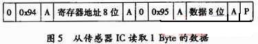 讀數(shù)據格式:圖5所示為讀1 Byte數(shù)據時的正確幀格式。