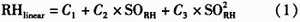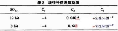 式中,RHlinear為經過線性補償后的濕度值,SORH為相對濕度測量值,C1,C2和C3為線性補償系數(shù),取值如表3所示。