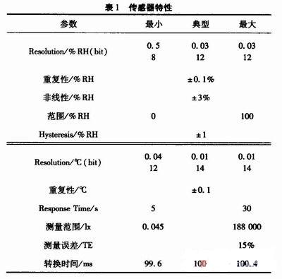 該傳感器集環(huán)境溫、濕度和光照度傳感器于一體,使測量系統(tǒng)的成本和體積大為降低,減少了系統(tǒng)設計的復雜性。