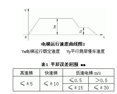 根據(jù)電梯運行的特點及以上要求,電梯的運行速度應(yīng)當(dāng)符合圖1所示曲線。平層誤差應(yīng)符合表1規(guī)定。