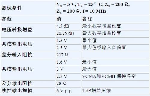 表1.ADL5380接口和增益參數(shù)