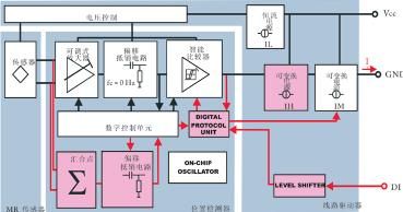 為消除此噪聲對輸出信號的影響,另一封裝中裝入了信號處理專用集成電路(ASIC)。后者也包含一個線路驅動器,以便為信號處理和高電壓接口提供電源電壓(圖 1)。圖 4 所示為信號處理架構。用于故障排除的中心元件為包括調式放大器、偏移抵消電路和智能比較器。根據傳感器和編碼器輪之間的距離,可調式放大器可以與信號級匹配。對于偏移抵消電路,有一種控制系統(tǒng)(與高通濾波器不同)可消除偏移,同時將系統(tǒng)頻率保持為 0?Hz。否則,就不可能檢測到停止不動的編碼器輪。智能比較器的臨界值是可變的,并且可設置,使磁滯處于信號振幅的 20% 和 45% 之間。這可確保充分抑制噪聲,而且振幅突降達 50% 也不會影響系統(tǒng)的正常運轉。模擬前端的個別組件控制則通過數字接口實現。所述系統(tǒng)均利用仿真技術開發(fā)和驗證。下文將概略介紹系統(tǒng)開發(fā),同時闡述如何使用模型來改進設計。
