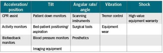 通過(guò)一個(gè)功耗極低的緊湊器件來(lái)精確檢測(cè)和測(cè)量運(yùn)動(dòng)的能力,幾乎對(duì)任何涉及到運(yùn)動(dòng)的應(yīng)用都是有價(jià)值的,甚至對(duì)那些運(yùn)動(dòng)要求不是很關(guān)鍵的應(yīng)用也是有價(jià)值的。表1按運(yùn)動(dòng)類型列出了一些基本醫(yī)療應(yīng)用。需要解決更多挑戰(zhàn)的更高級(jí)應(yīng)用將在稍后討論。