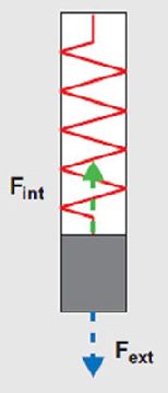 例如,圖1顯示了安裝于頂部位置的一個傳感器,與此同時底部正受到一個外力的拉拽,即Fext.在使用加速計的情況下,固定端(頂部)會粘附在要測量加速度的物體上,同時外力為粘附于另一端(底部)的質量的慣性,而這一端不斷想要保持靜止。就固定于頂端的參考坐標系而言(假設傳感器充當的是一個彈簧,其具有很高的彈簧系數 K),偏斜x會形成一種反作用力: