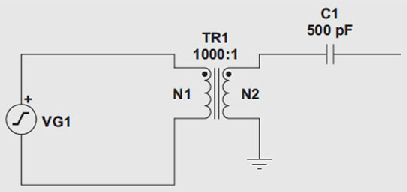 最后,如果這種生成器需要代表實際物理信號,則可以使用變壓器,如圖2所示。本例中,我們建模了一個具有0.5pC/g靈敏度和500pF寄生電容的生成器。正弦波生成器每單位g輸出1V以實現仿真。變壓器在其次級線圈將它向下調節(jié)至 1mV.施加給C1(500 pF)的1mV擺動,將會如我們預計的那樣在下一級注入 Q = VC = 0.5 pC.