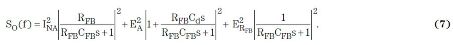 在第三項中,如果RFB = 540MΩ,則這一項對輸出噪聲的貢獻值約為3 μV/√HZ /5.85=510 nV / √HZ .