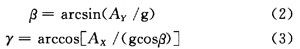 當(dāng)加速度計(jì)被定向,那么它的X和Y軸就和地球表面平行可用來(lái)作為具有翻滾和傾斜兩個(gè)軸的雙軸斜度傳感器,被測(cè)物體的俯仰角記為γ和橫滾角β。將磁阻傳感器的3個(gè)敏感軸沿載體的3個(gè)坐標(biāo)軸安裝,分別測(cè)量地磁場(chǎng)磁感應(yīng)強(qiáng)度H在載體坐標(biāo)系3個(gè)坐標(biāo)上的投影分量(HX,HY,HZ),然后利用俯仰角和橫滾角進(jìn)行姿態(tài)解算就可以得到電子羅盤(pán)的方位角。