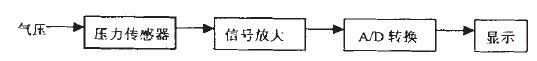 下面以測(cè)量輪胎氣壓為例詳細(xì)闡述氣壓傳感器在汽車輪胎方面的應(yīng)用。此種設(shè)計(jì)可做成一種便攜式的裝置,測(cè)量時(shí)將氣壓傳感器的表置于輪胎氣門嘴上,這時(shí)胎壓作用于傳感器的膜片上, 通過(guò)壓阻效應(yīng)和系列變換輸出微弱的電壓信號(hào),將電壓信號(hào)進(jìn)行相應(yīng)處理顯示電壓值。由此可知不同的氣壓對(duì)應(yīng)著不同的電壓值,即氣壓值和電壓值是一一對(duì)應(yīng)的,從而間接測(cè)量了氣壓值。胎壓測(cè)量電路方框圖如圖4所示。