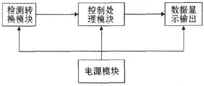 該系統(tǒng)主要以CAV424檢測(cè)芯片和微處理器控制模塊為核心, 另外還有輸出顯示模塊以及電源模塊等。系統(tǒng)框圖如圖2所示。