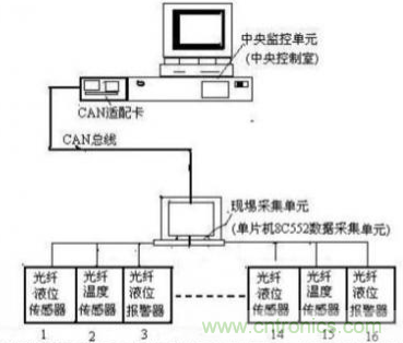 充分應用CAN網(wǎng)絡和光纖傳感器的特點,將整個系統(tǒng)的擴展-遠程油庫油罐的液位、溫度信號實時監(jiān)測系統(tǒng)。