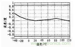 根據(jù)參考文獻(xiàn),SCA100T-D01的溫度誤差曲線如圖6所示。