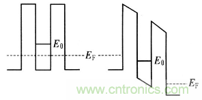 圖1:量子阱外加偏壓前后示意圖