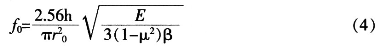 經(jīng)過分析,綜合考慮設(shè)計的要求,初步設(shè)定:h=20μm,R=200μm。其固有頻率可以按下式計算: