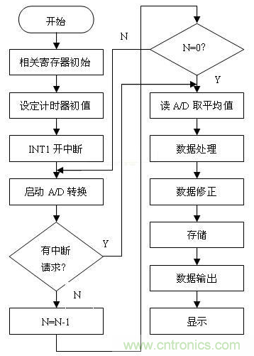 檢測(cè)處理程序流程框圖如圖4所示。采用MCS系列匯編語言〔5〕編程,由于有硬件設(shè)計(jì)的保證,使得整個(gè)系統(tǒng)既可以工作在循環(huán)查詢的方式,也可工作在中斷管理的方式。