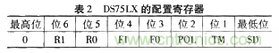 DS75LX的配置寄存器如表2所示,該寄存器可讀/寫(xiě),允許用戶選擇不同功能。這些功能包括報(bào)警輸出類型、溫度測(cè)量分辨率等。