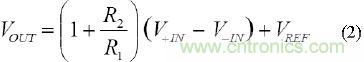 由于輸入之間的電壓等于反饋(FB)與參考(REF)端子之間的電壓時(shí),放大器的反饋要求可得到滿足,因此,我們可將該公式重寫為