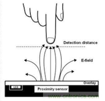 圖1:此圖說明了一個典型的電容式接近傳感器系統(tǒng)[page]