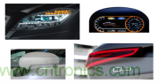 照明系統(tǒng)是汽車(chē)設(shè)計(jì)中關(guān)鍵的差異化因素,通過(guò)LED內(nèi)外部照明(包括尾燈、氛圍燈等)、高壓氣體放電燈(HID)、前照燈(包括遠(yuǎn)光燈、近光燈、LED轉(zhuǎn)向燈、LED霧燈和高速路面LED燈)、AFS及電機(jī)控制等,令汽車(chē)整車(chē)廠(chǎng)商改進(jìn)節(jié)能、提升能見(jiàn)度安全優(yōu)勢(shì)和打造獨(dú)特的車(chē)輛氛圍。