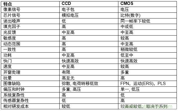 表 1 – CCD-CMOS 特點(diǎn)比較表
