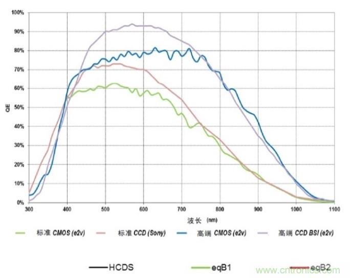 量子效率(Quantum efficiency ,QE) 是直接影響圖像傳感器光電性能的因素,因?yàn)楣怆娹D(zhuǎn)換效率的任何損耗都會(huì)直接減低信噪比 (Signal-To-Noise- Ratio,SNR) 。它的影響是兩方面的,因?yàn)楫?dāng)散粒噪聲(信號(hào)的平方根)是主要噪聲源時(shí),QE不單是信噪比的被除數(shù)(信號(hào)),同時(shí)也是除數(shù)(噪聲)。在這一點(diǎn)之上,CCD和CMOS處于同一水平,可是CCD在QE改進(jìn)方面累積有多年的技術(shù)工藝優(yōu)化,而在CIS的QE改進(jìn)發(fā)展相對(duì)較遲?;诠栉镔|(zhì)的物理特性,較長(zhǎng)的波長(zhǎng)能穿透光敏轉(zhuǎn)換地帶,所以會(huì)使用厚的外延材料來增加上紅色和近紅外線波長(zhǎng)的QE。根據(jù)比爾朗伯定律(Beer-Lambert law),被吸收的能量是與介質(zhì)的厚度成指數(shù)關(guān)係。高端應(yīng)用的 CCD 利用較厚的硅物質(zhì)和背照(back side illumination ,BSI)工藝以恢復(fù)高寬帶QE和近紅外線(near infrared ,NIR)敏感度,因而擁有優(yōu)勢(shì)。