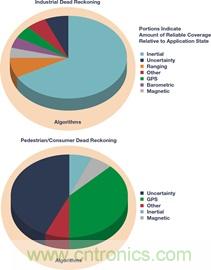 與其形成鮮明對(duì)比的是,工業(yè)導(dǎo)航定位推算方案是針對(duì)系統(tǒng)性能定義而設(shè)計(jì)的,要根據(jù)具體精度要求選擇組件。更高質(zhì)量的慣性傳感器允許其發(fā)揮主要作用,適當(dāng)利用其他傳感器來(lái)縮小不確定性差距。比起推算/估算可靠的傳感器讀數(shù)間的位置,算法在概念上更關(guān)注最佳權(quán)重、切換和傳感器互補(bǔ),以及對(duì)于環(huán)境和實(shí)時(shí)運(yùn)動(dòng)動(dòng)力學(xué)的認(rèn)識(shí)。