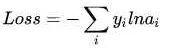然而實(shí)際上x對(duì)應(yīng)的概率其實(shí)是第一類,比如[1,0,0],現(xiàn)在拿到的概率(或者可稱為似然)是[0.88、0.12、0]。那么它們之間究竟有多大的差距呢?這個(gè)差距就是損失值loss。如何獲取到損失值呢?在softmax里我們用互熵?fù)p失函數(shù)計(jì)算量最?。ǚ奖闱髮?dǎo)),如下所示: